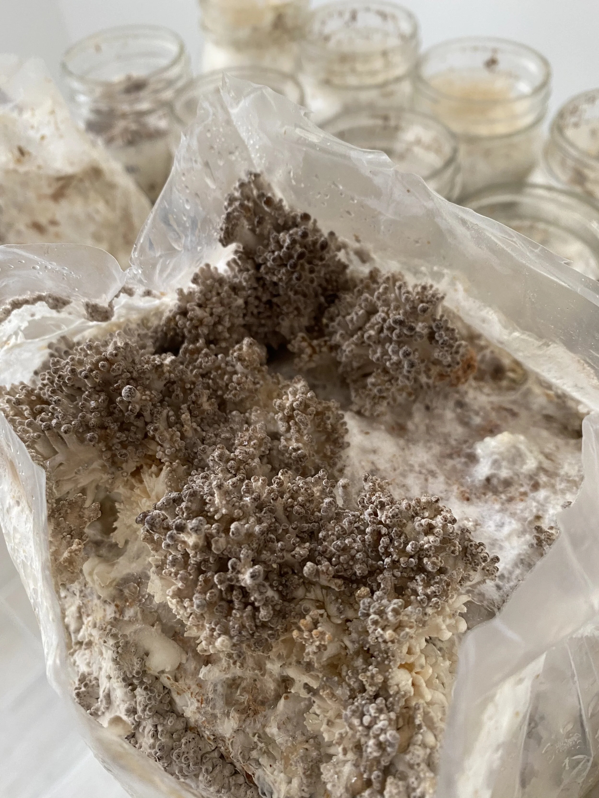 So far, liquid culture and grain spawn have been fairly successful. Fruiting substrates on the other hand— much more challenging. But we have had a lot of rookie success with our strains — screening 32 in total!