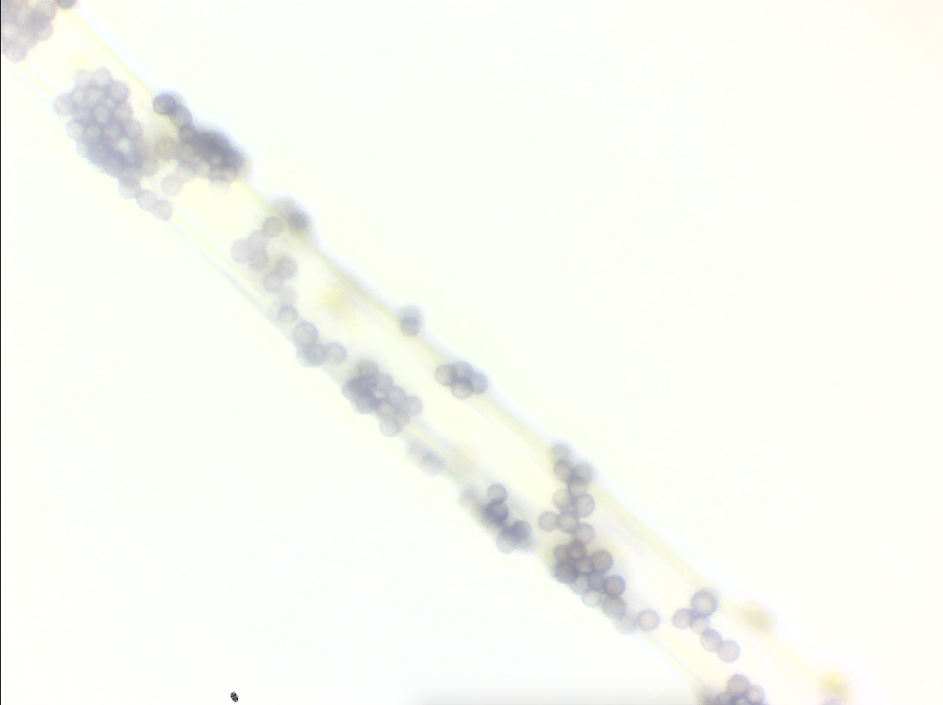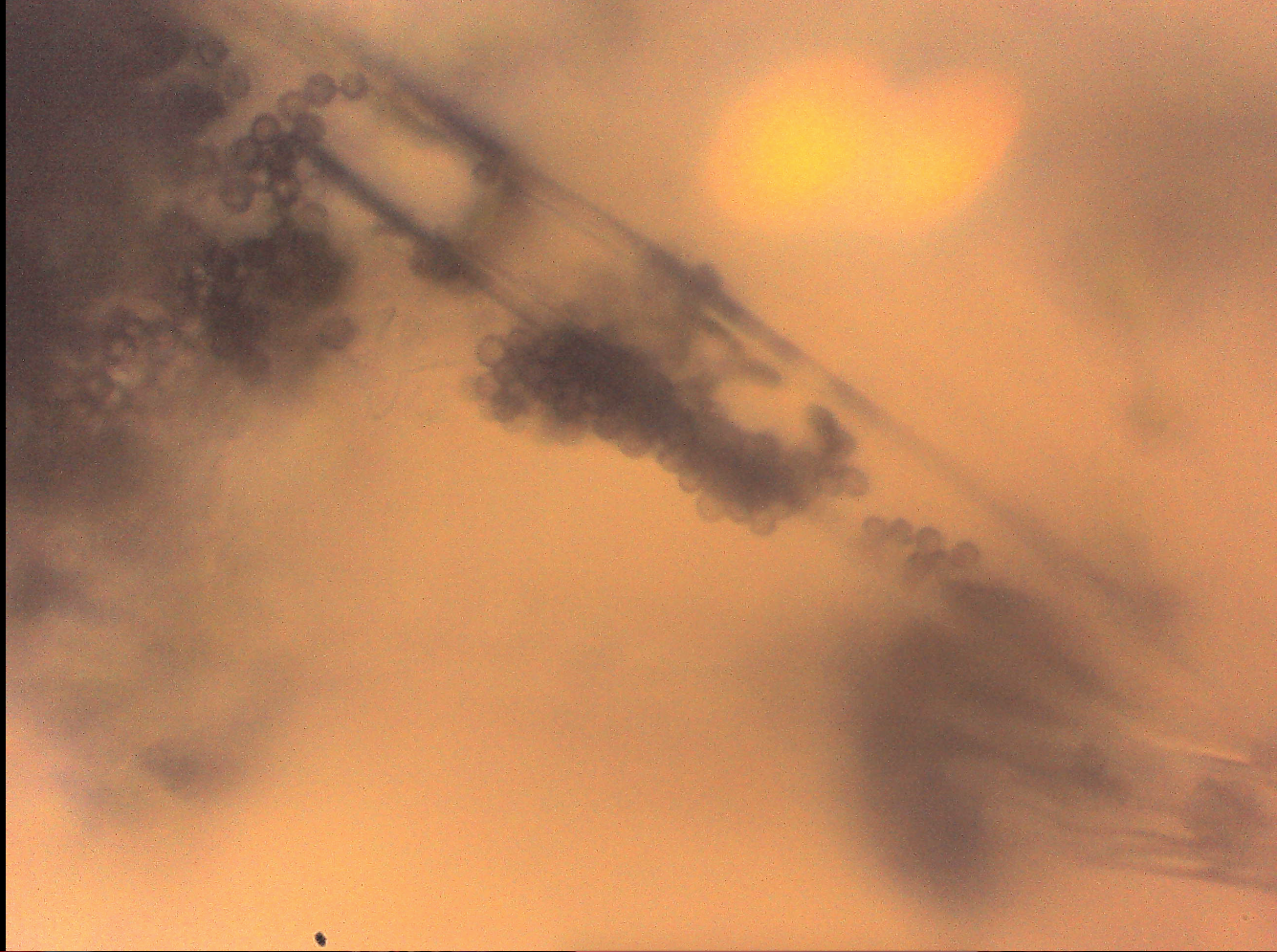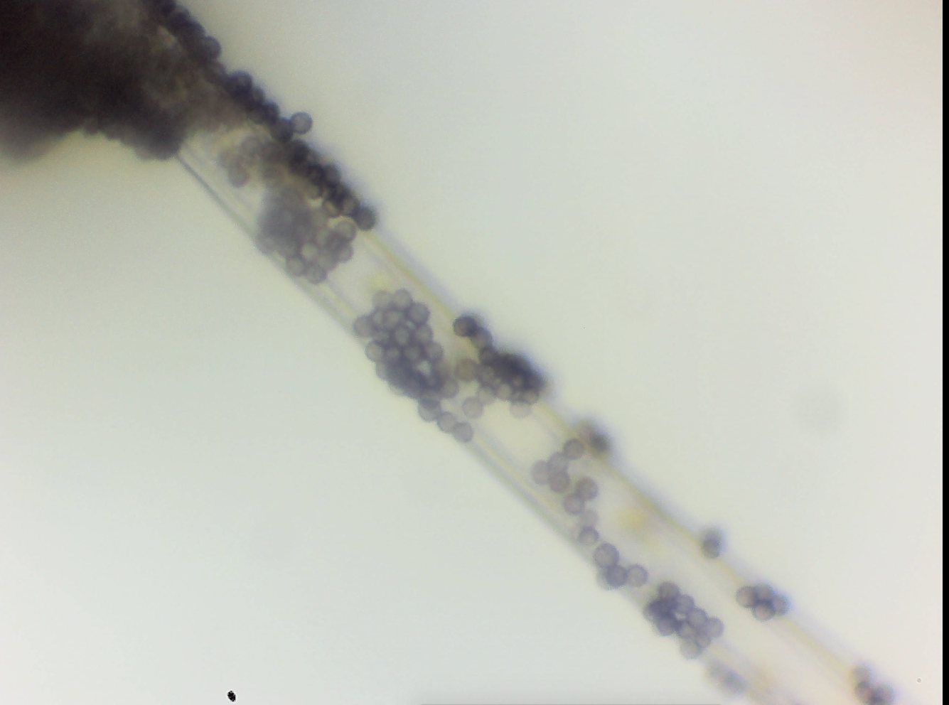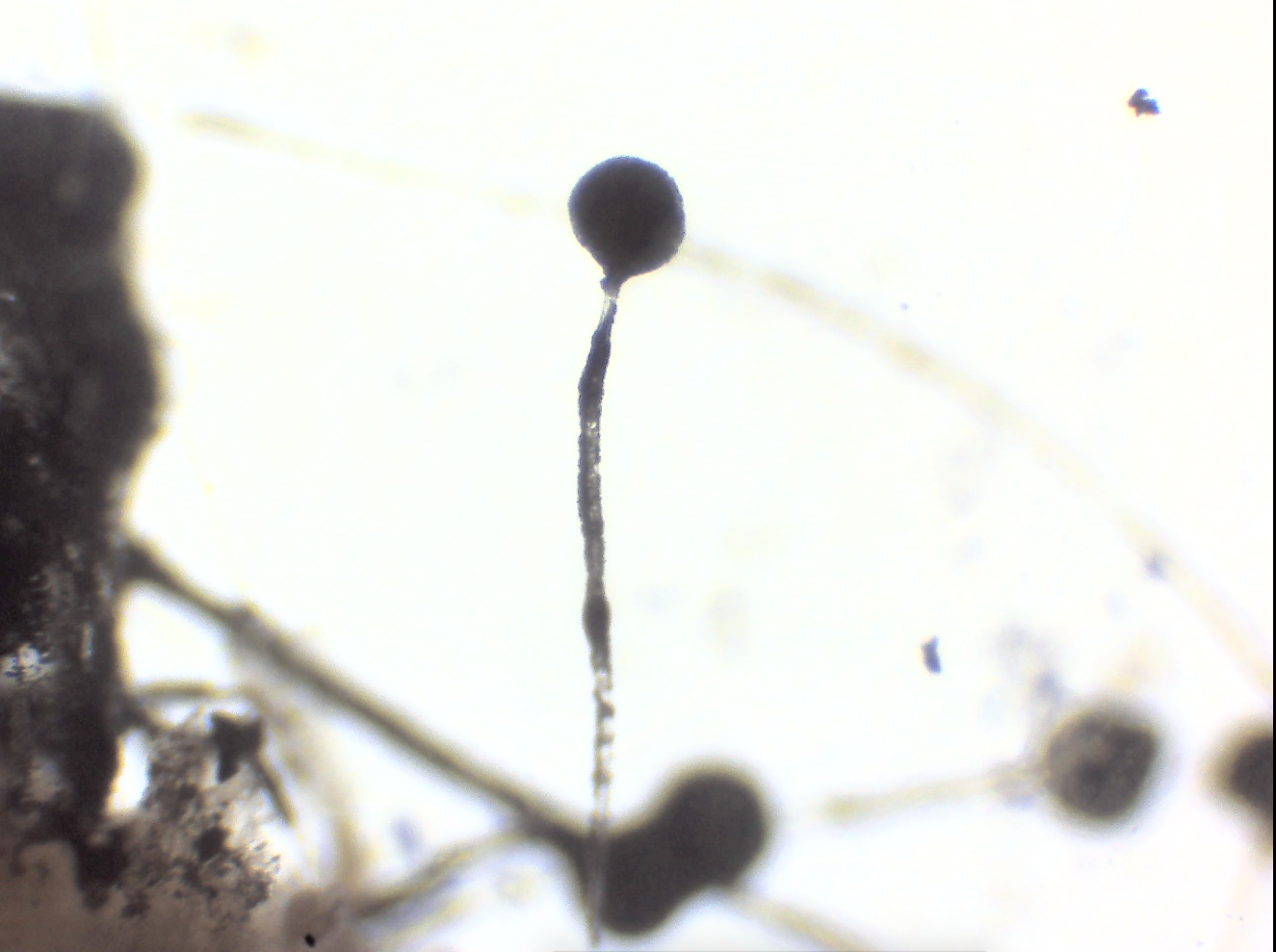 It’s Friday evening. I’m doing my routine incubation check and find this… scary contaminant… growing on a couple different masters mix oyster bags. From the macro, they appeared to be long thread/tubule-like structures with a black ball at the end.